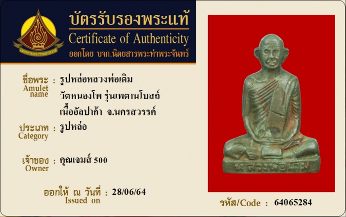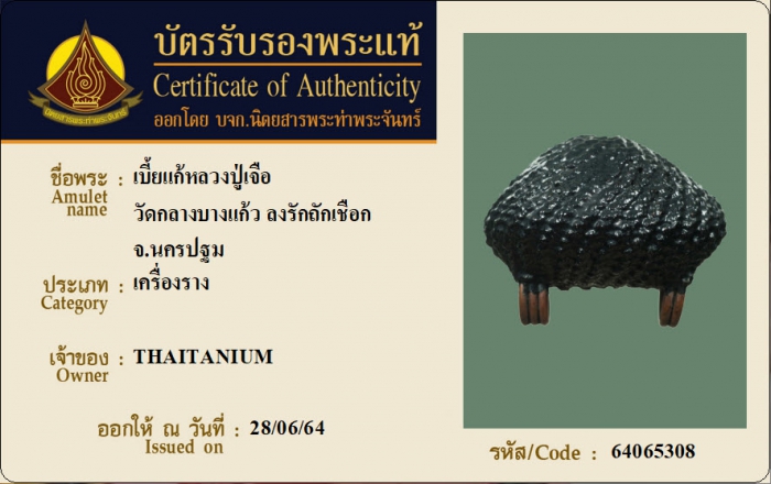 ค้นหาใบการันตีพระแท้