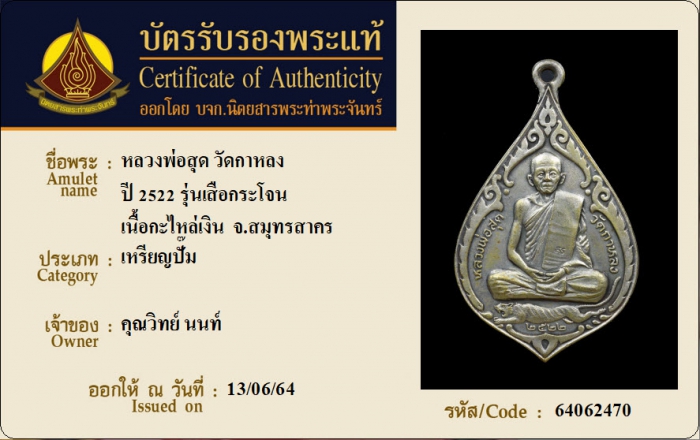 ค้นหาใบการันตีพระแท้