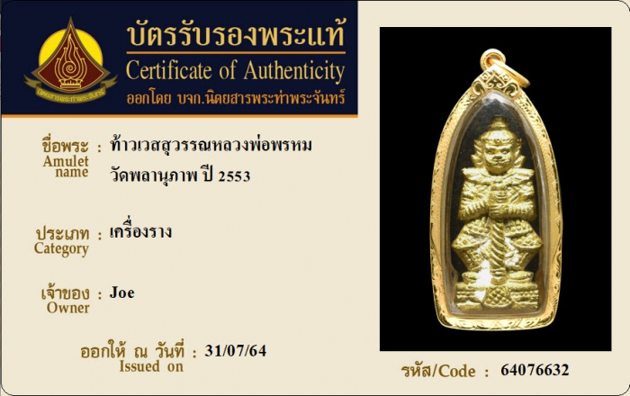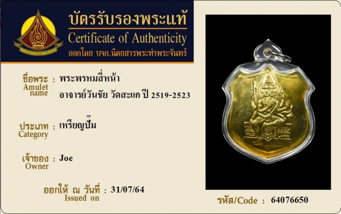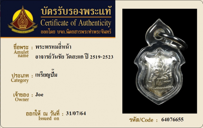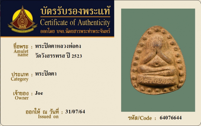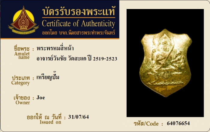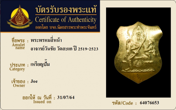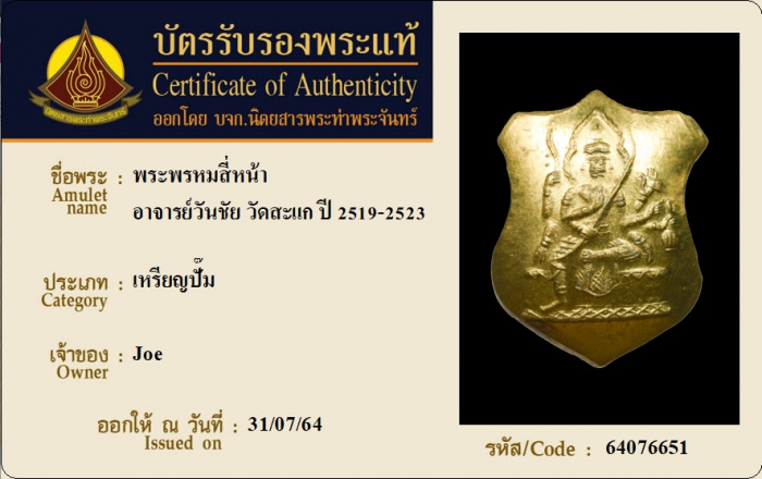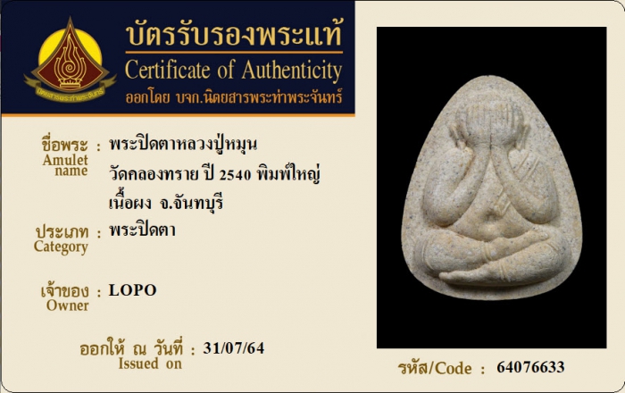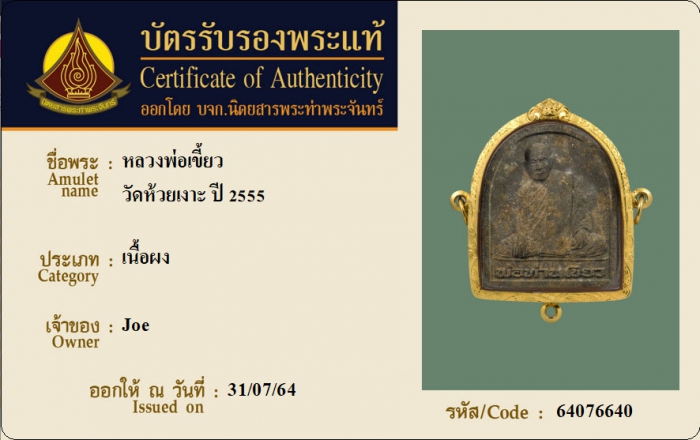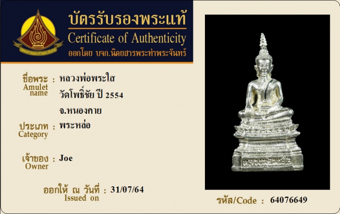 ค้นหาใบการันตีพระแท้