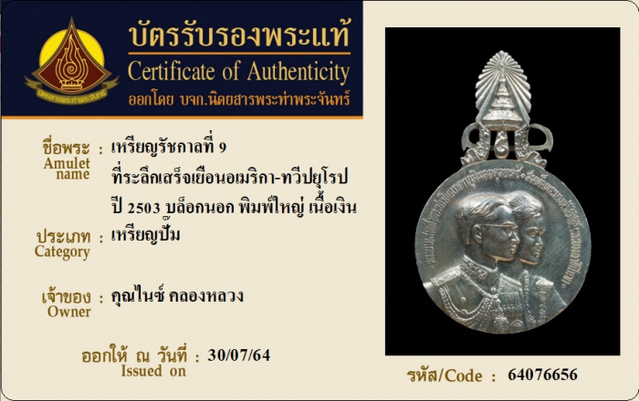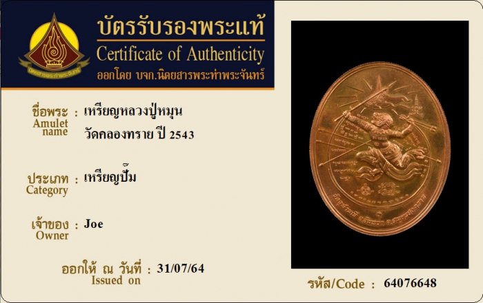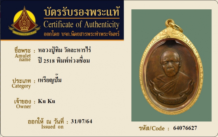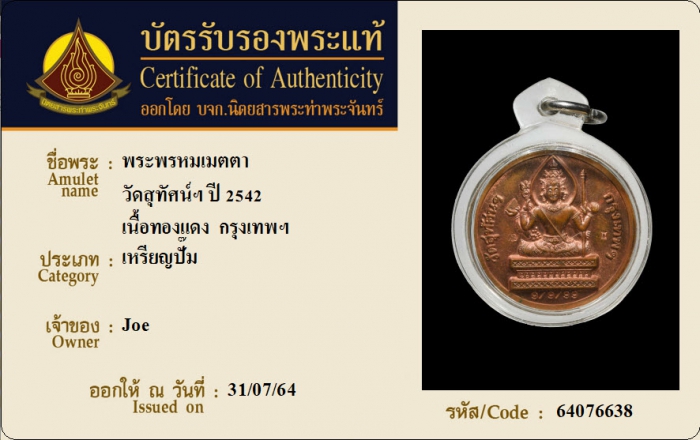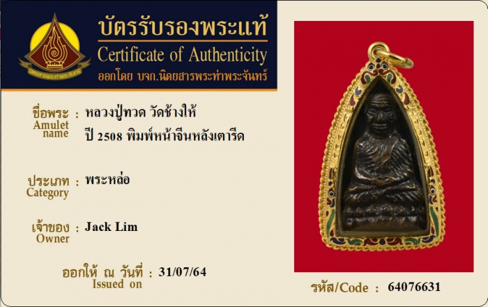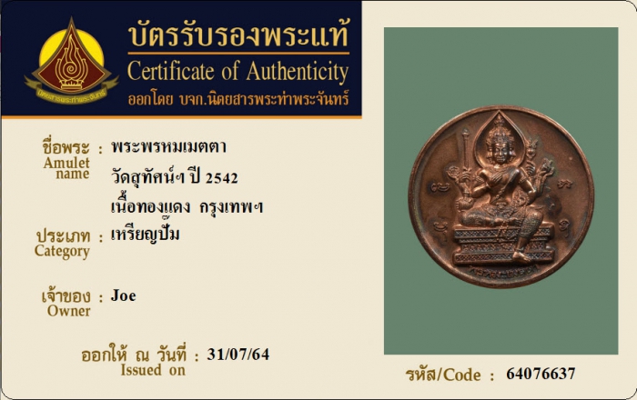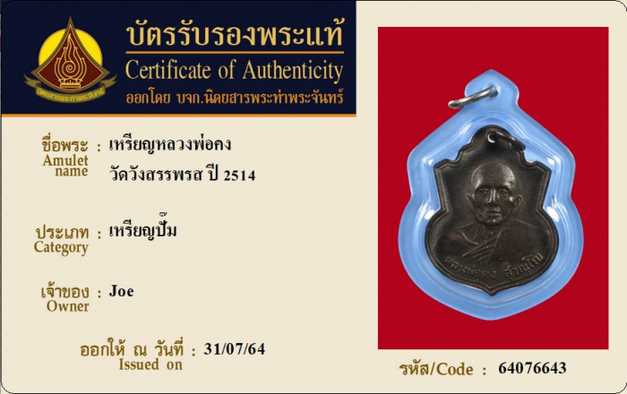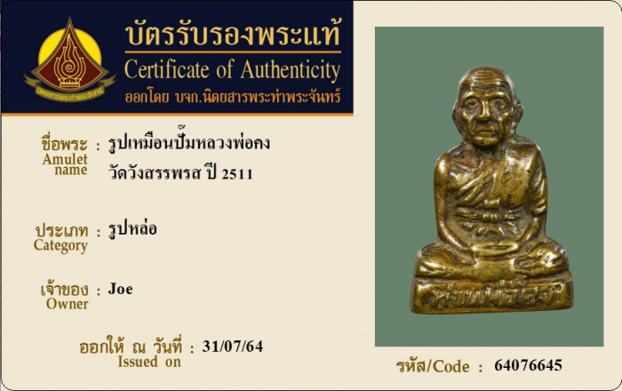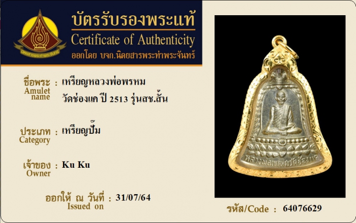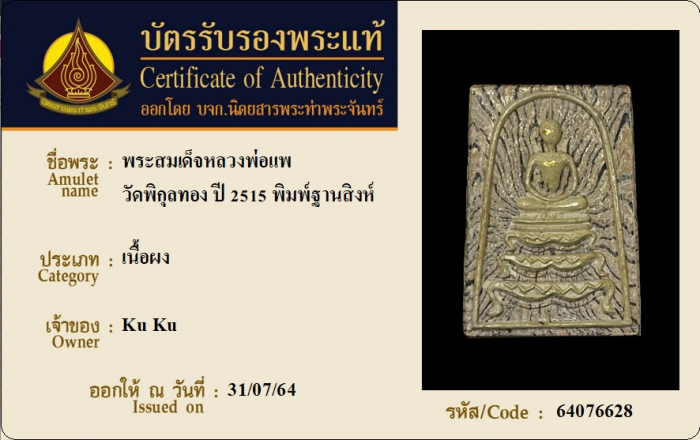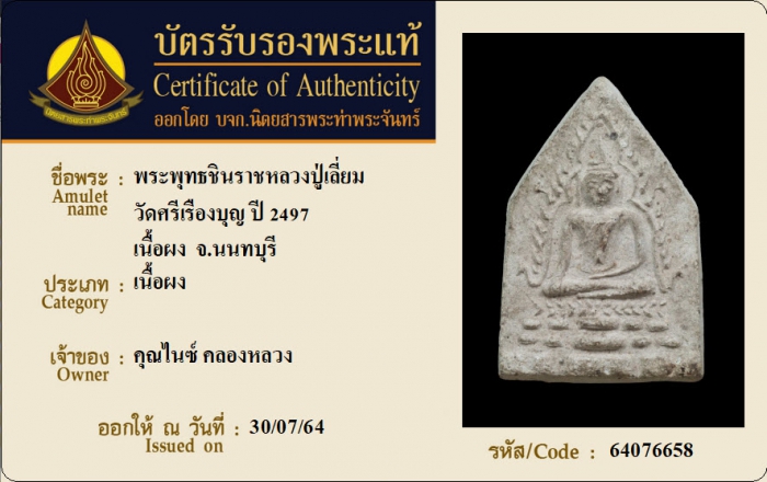 ค้นหาใบการันตีพระแท้