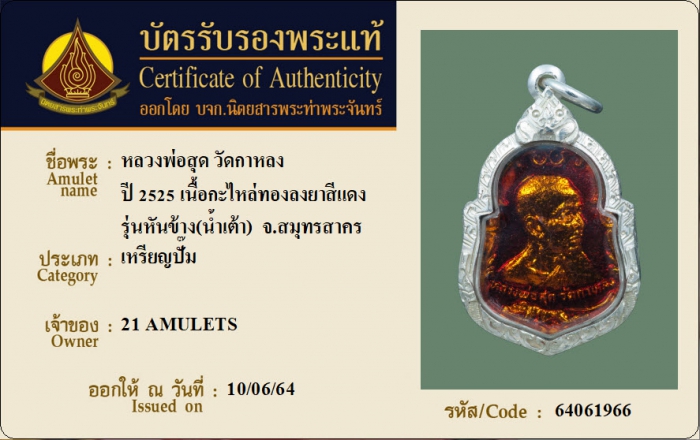 ค้นหาใบการันตีพระแท้