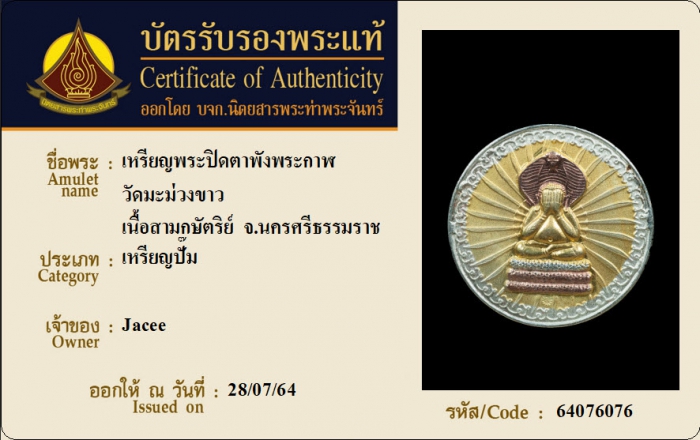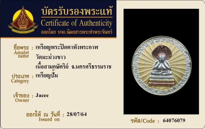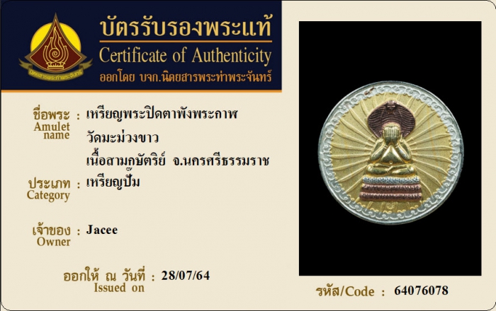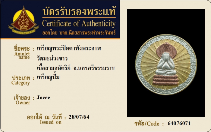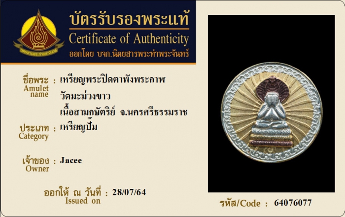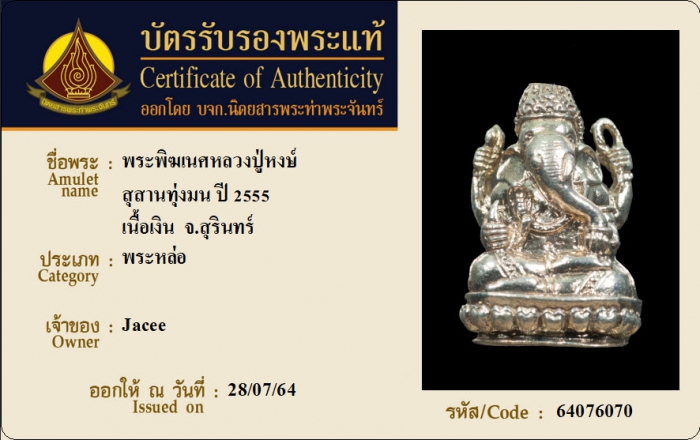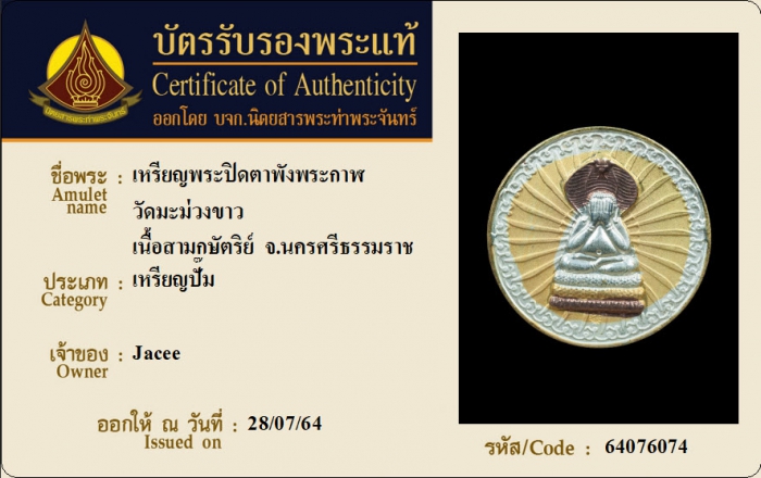 ค้นหาใบการันตีพระแท้