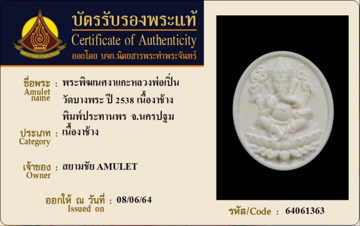 ค้นหาใบการันตีพระแท้