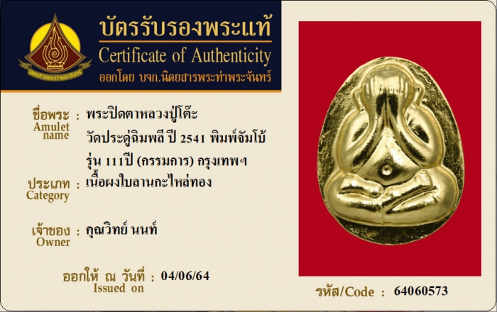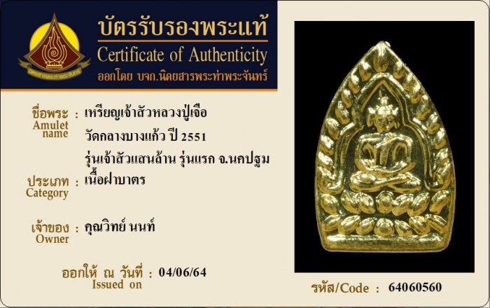ค้นหาใบการันตีพระแท้