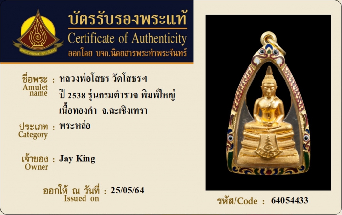 ค้นหาใบการันตีพระแท้