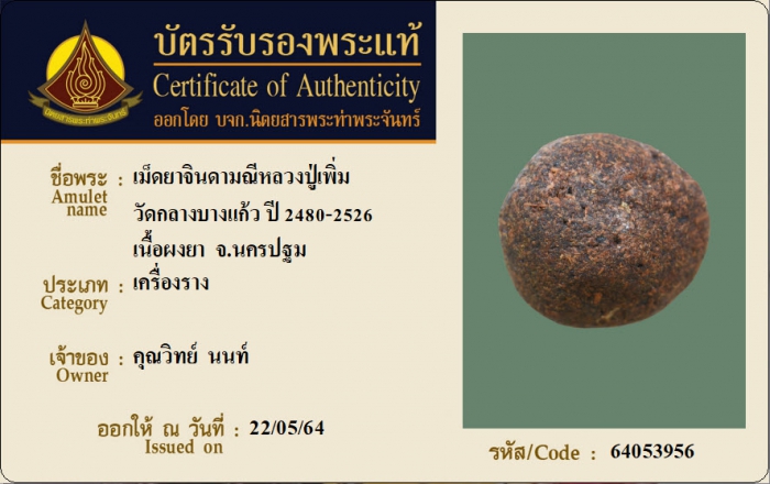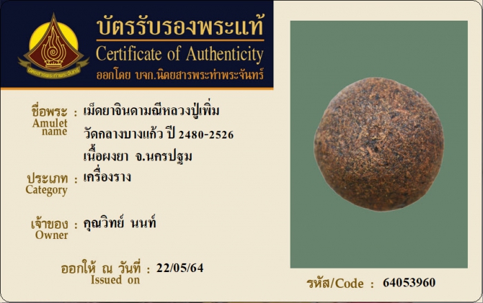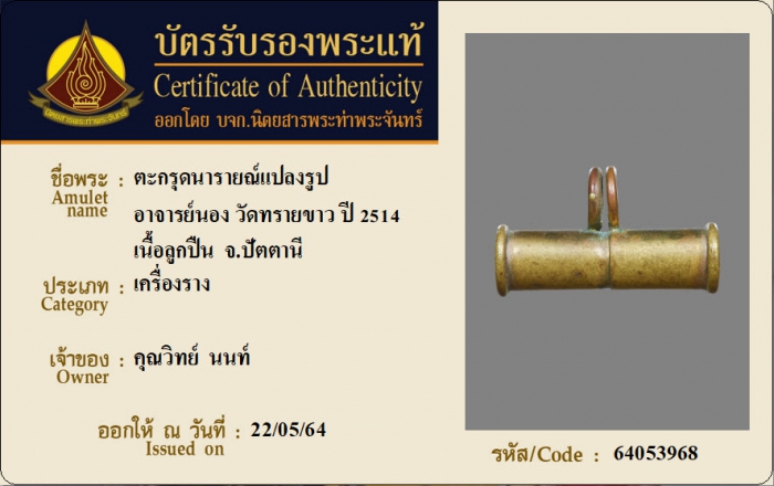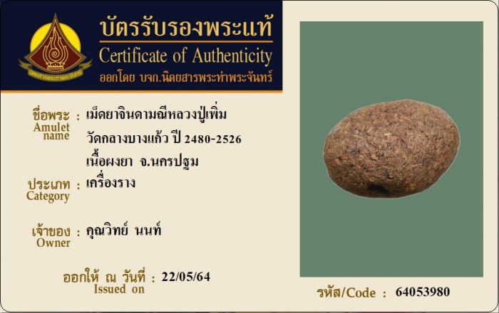 ค้นหาใบการันตีพระแท้