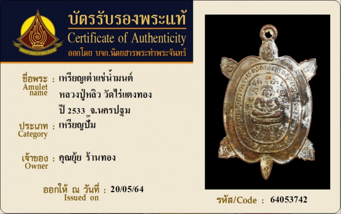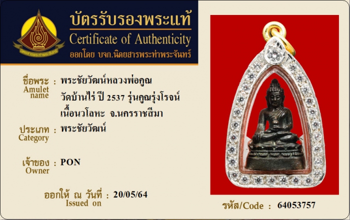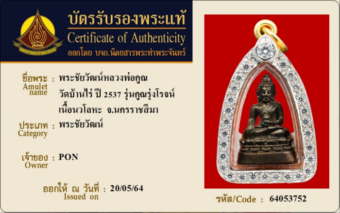 ค้นหาใบการันตีพระแท้