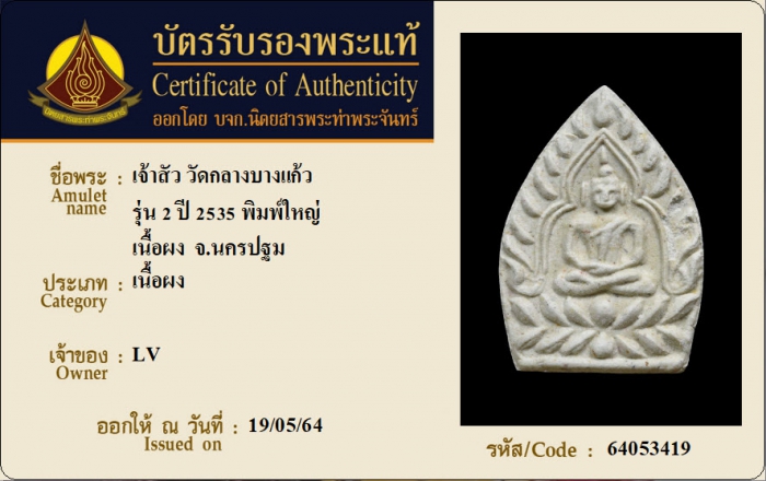 ค้นหาใบการันตีพระแท้