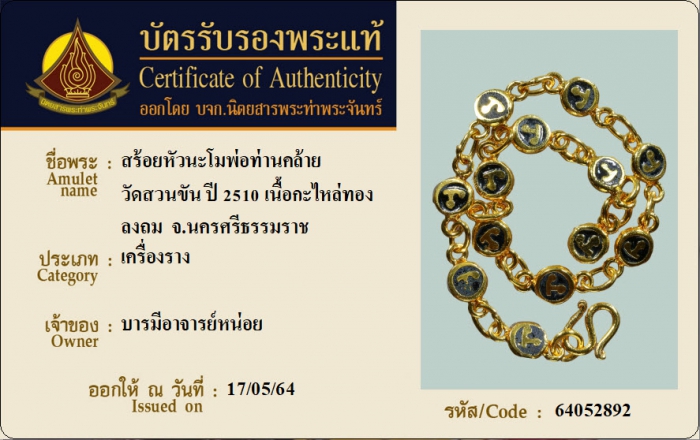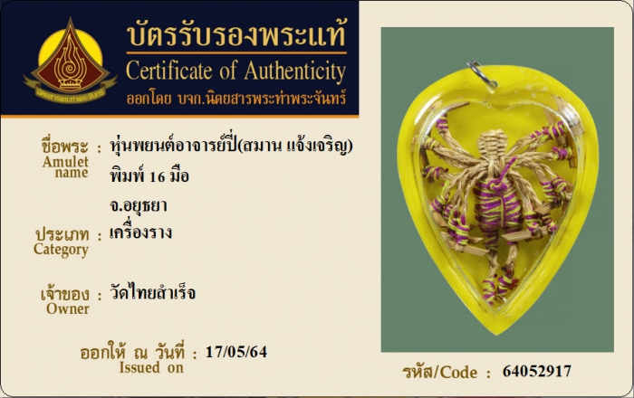 ค้นหาใบการันตีพระแท้
