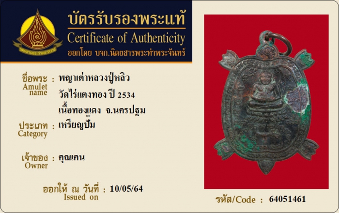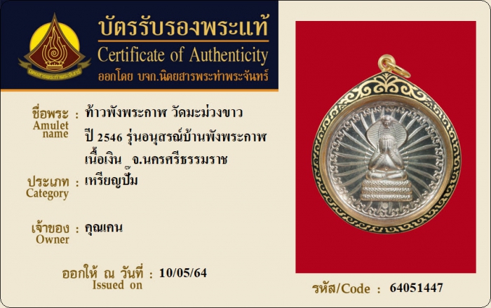 ค้นหาใบการันตีพระแท้