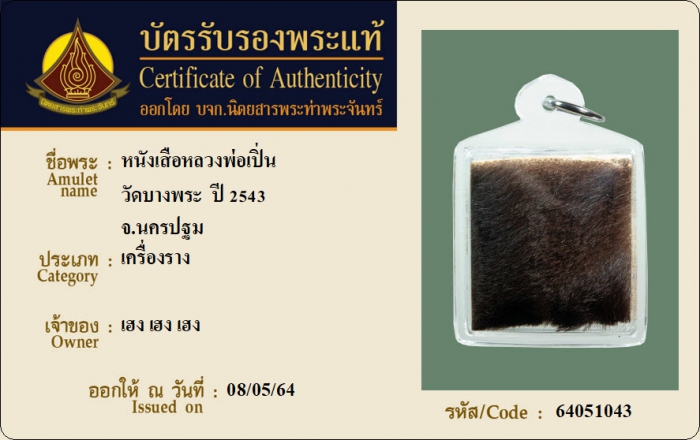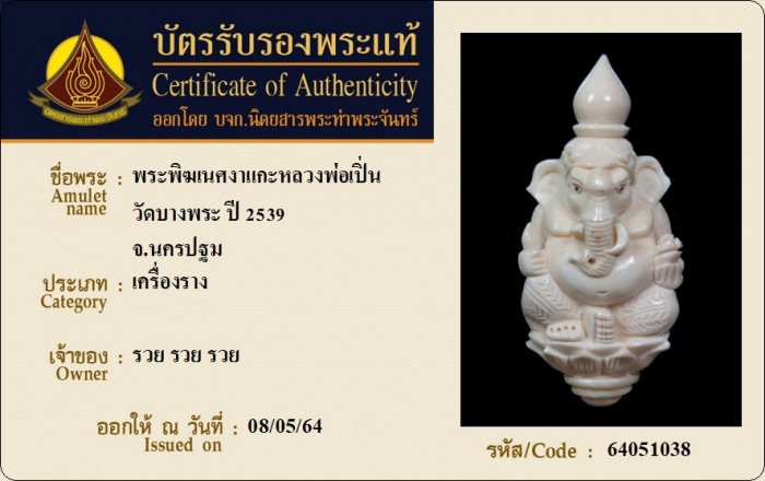 ค้นหาใบการันตีพระแท้