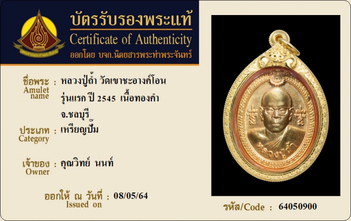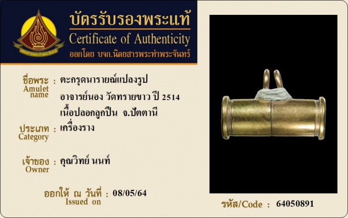 ค้นหาใบการันตีพระแท้