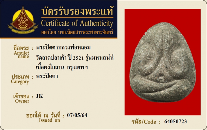 ค้นหาใบการันตีพระแท้