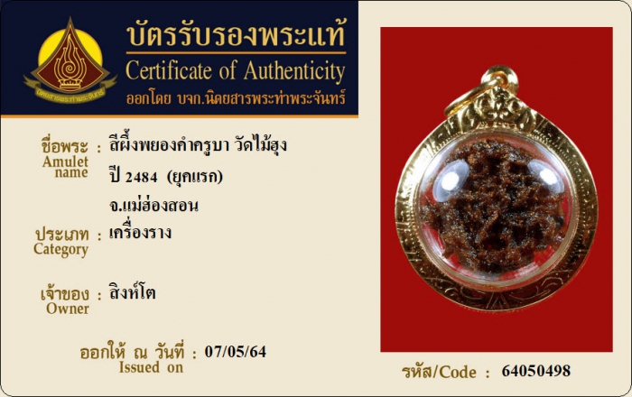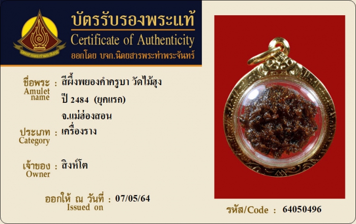 ค้นหาใบการันตีพระแท้