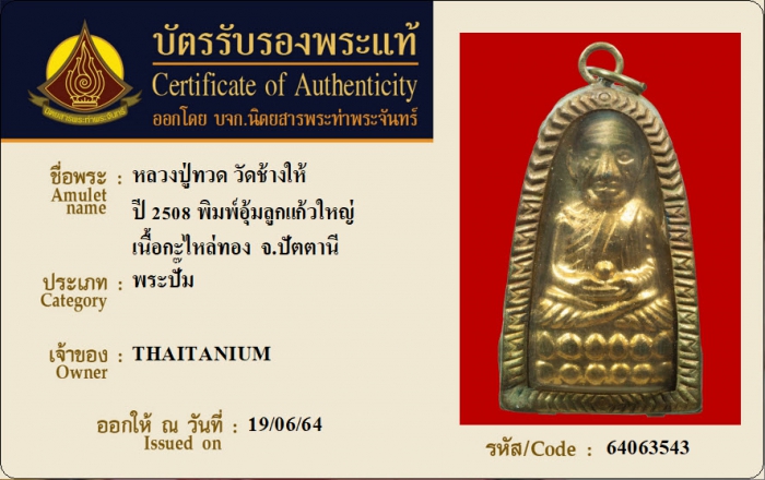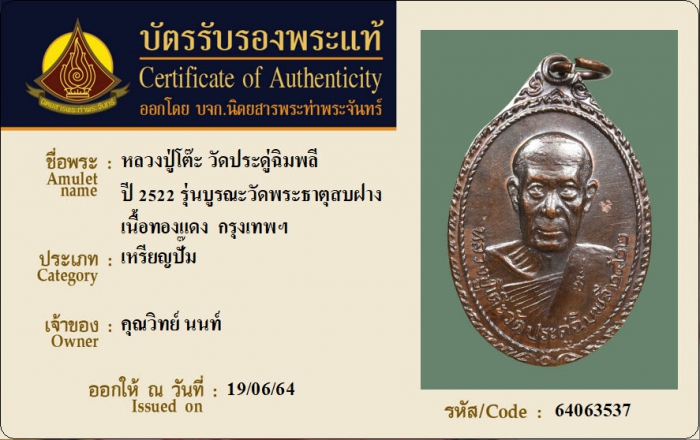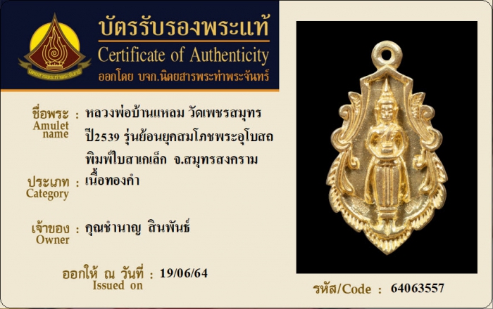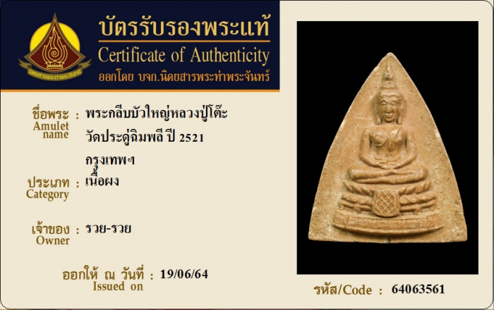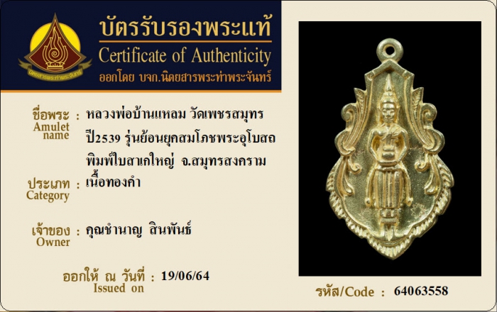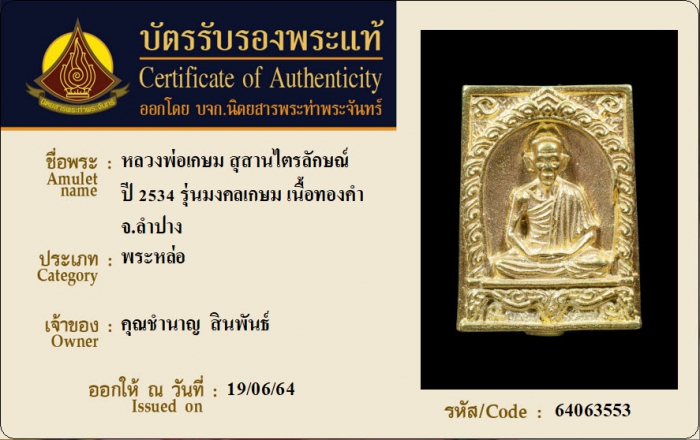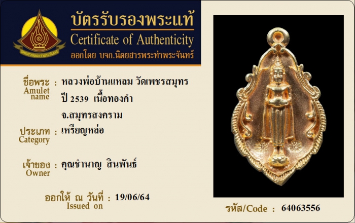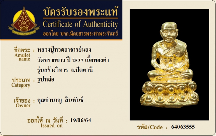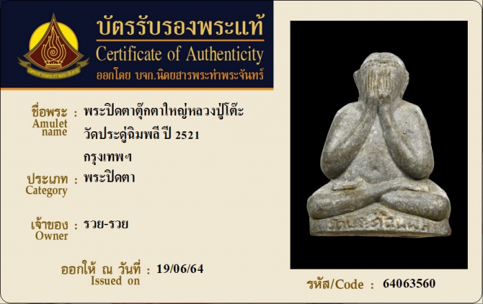 ค้นหาใบการันตีพระแท้