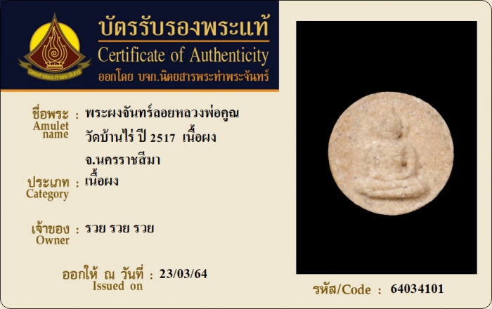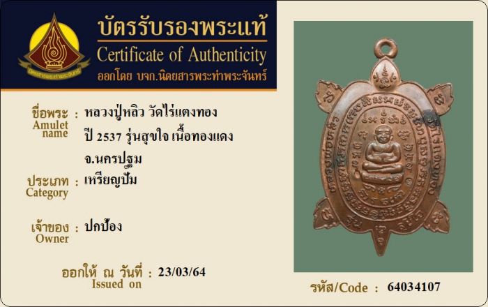 ค้นหาใบการันตีพระแท้