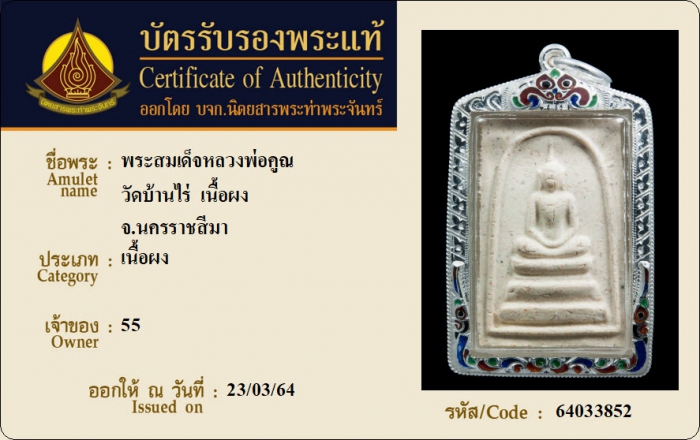 ค้นหาใบการันตีพระแท้