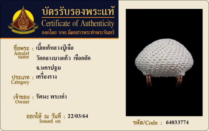 ค้นหาใบการันตีพระแท้