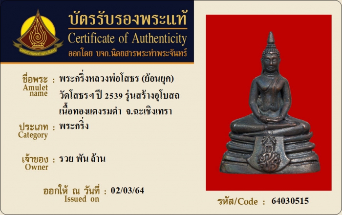 ค้นหาใบการันตีพระแท้