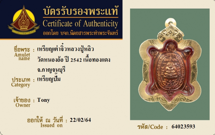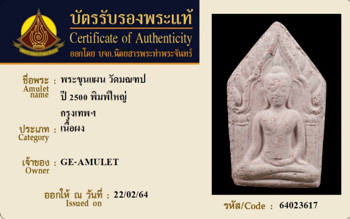 ค้นหาใบการันตีพระแท้