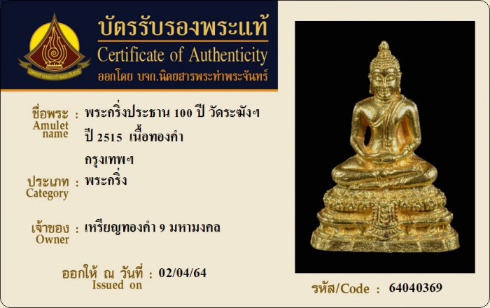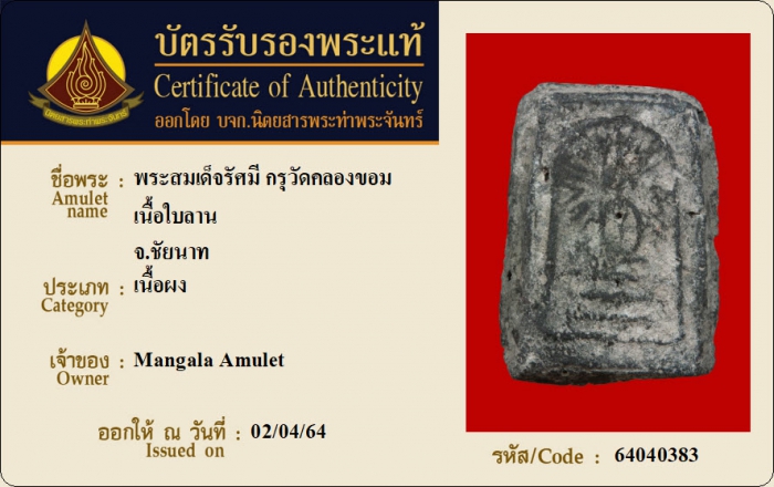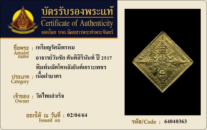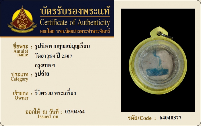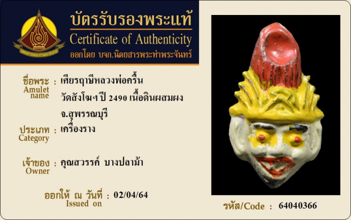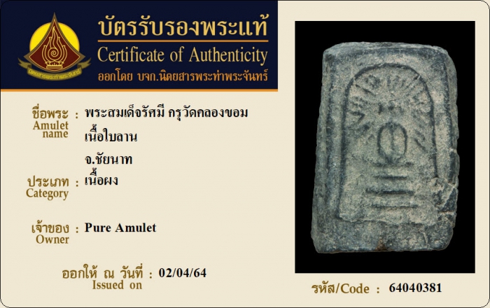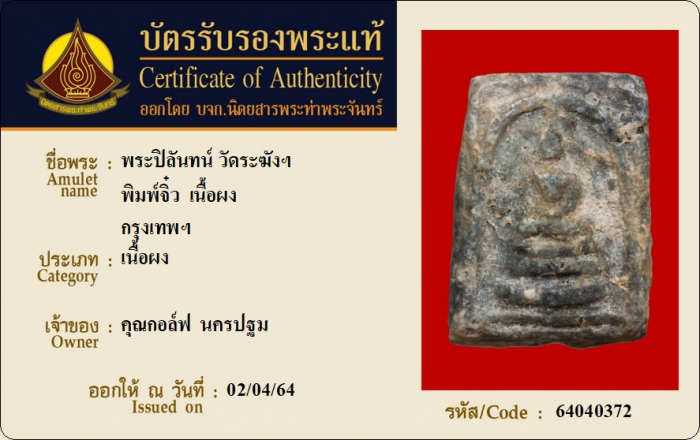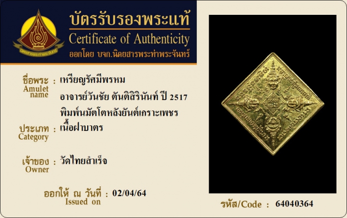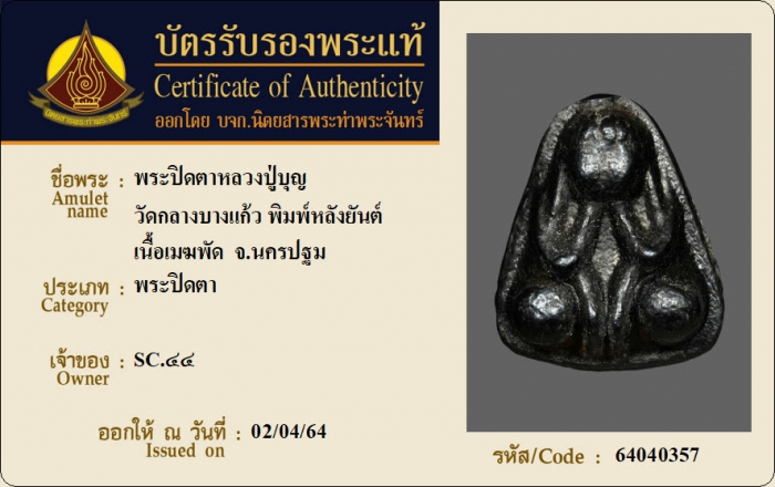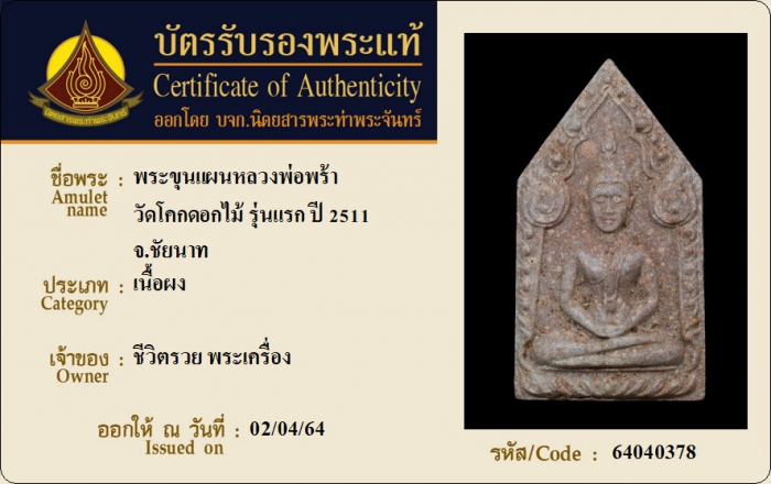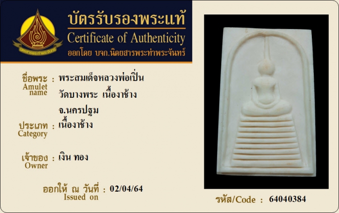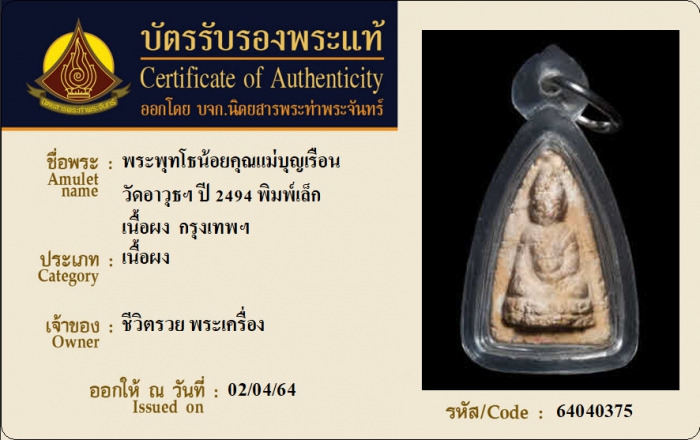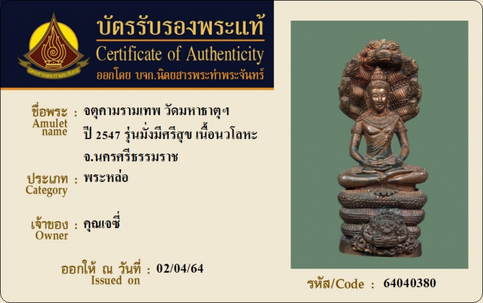ค้นหาใบการันตีพระแท้