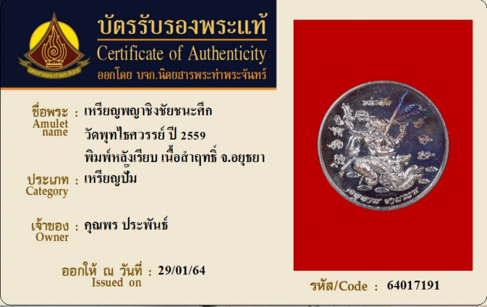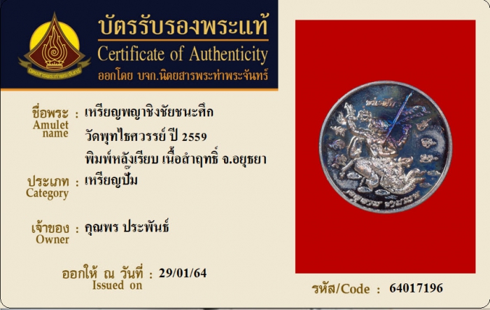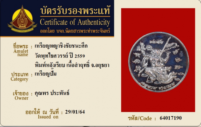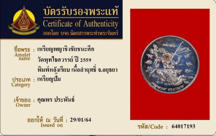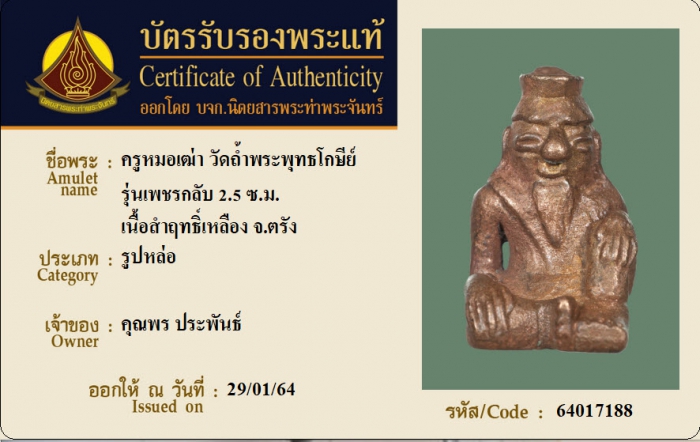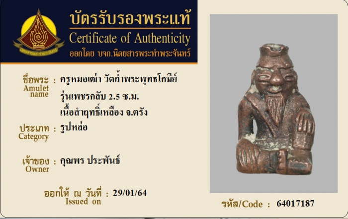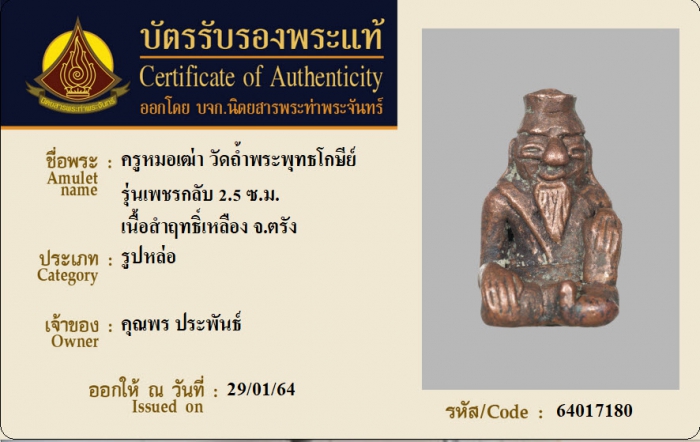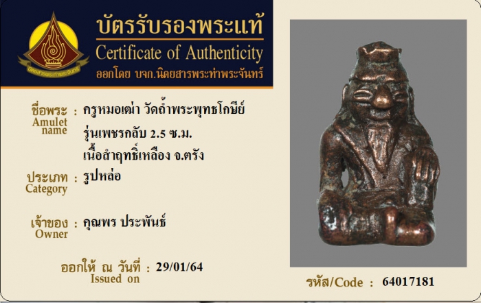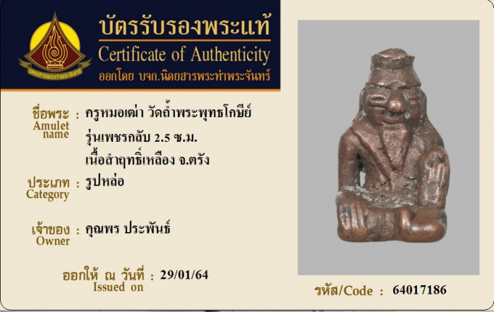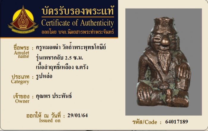 ค้นหาใบการันตีพระแท้