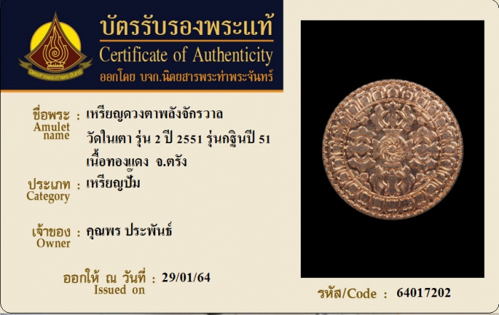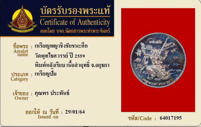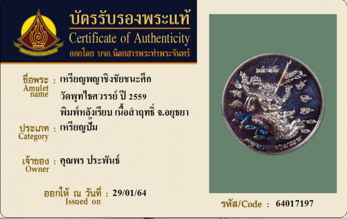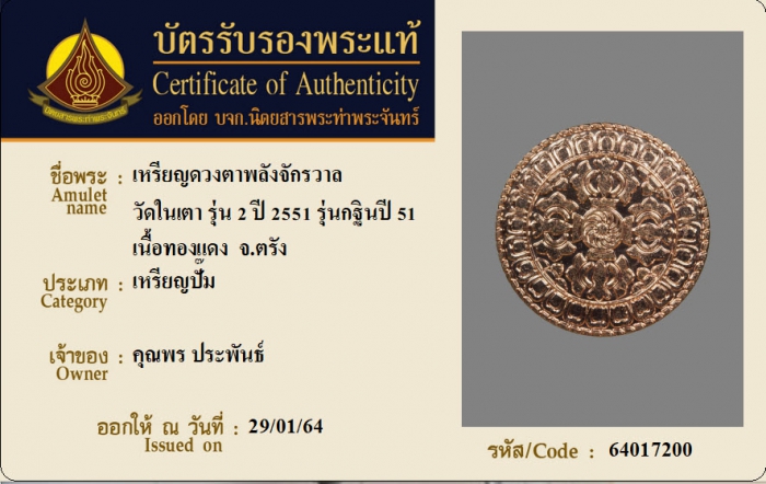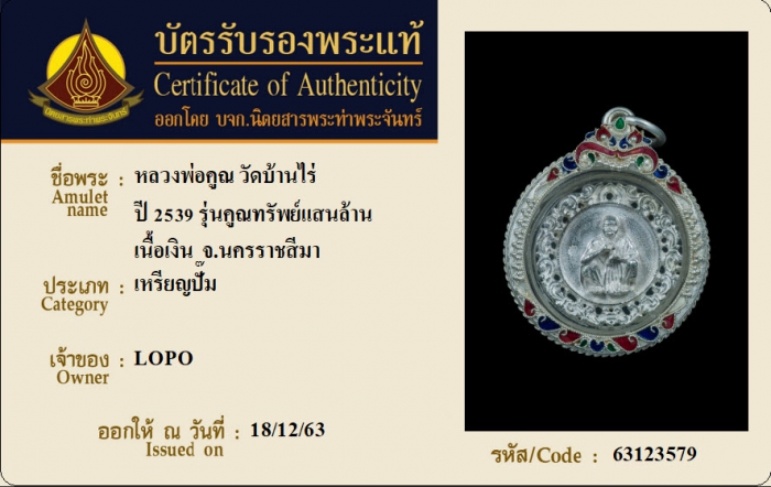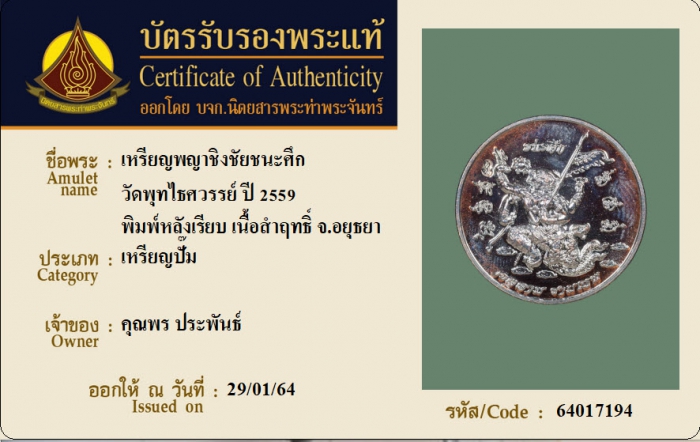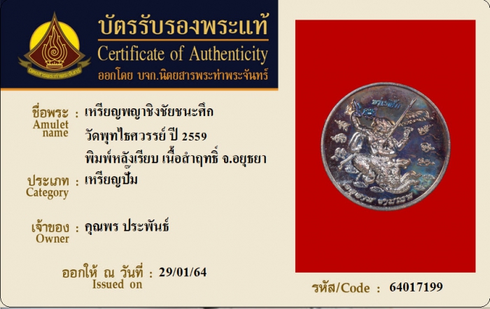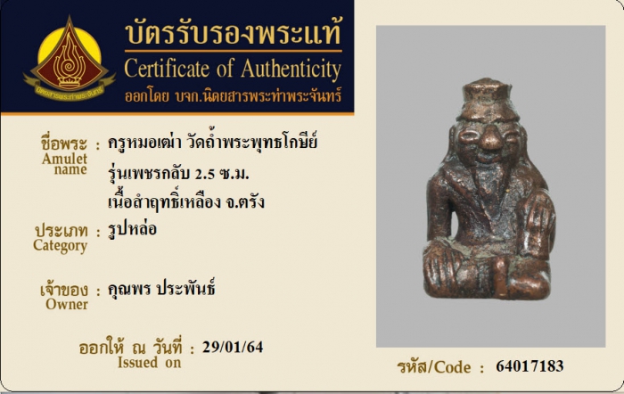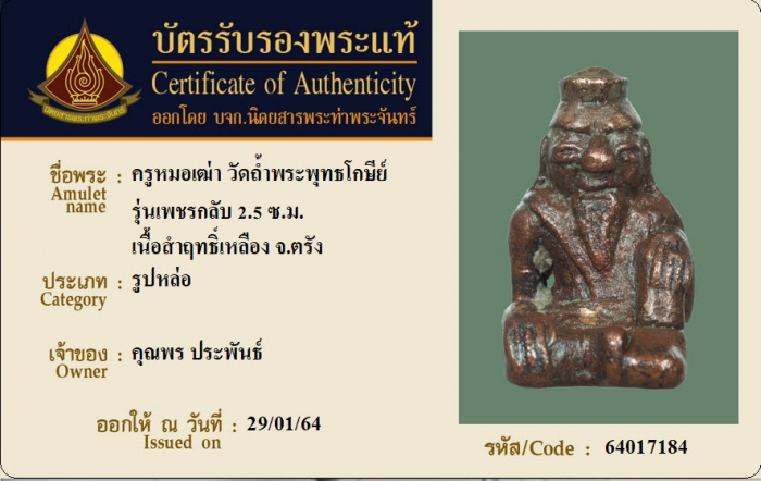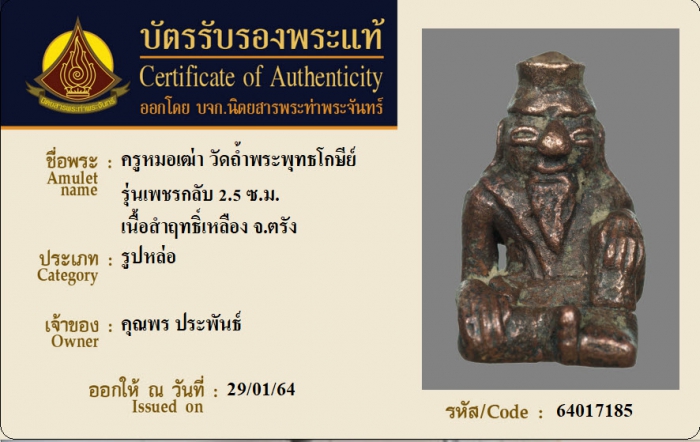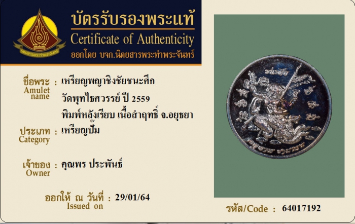 ค้นหาใบการันตีพระแท้