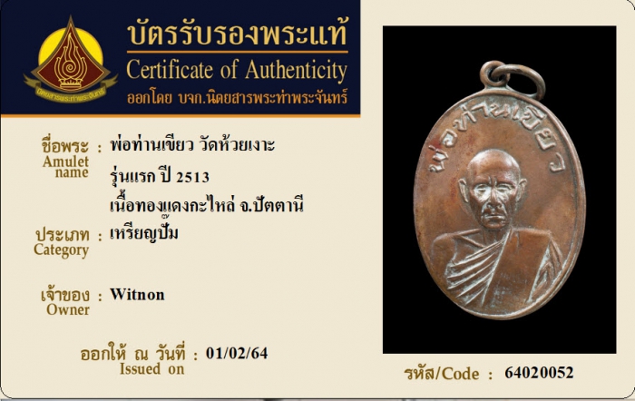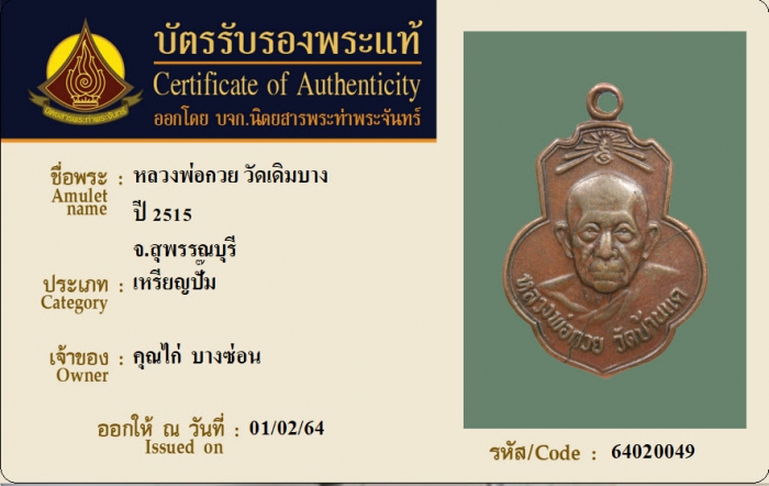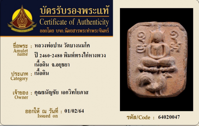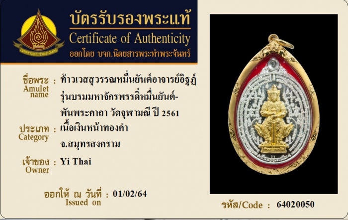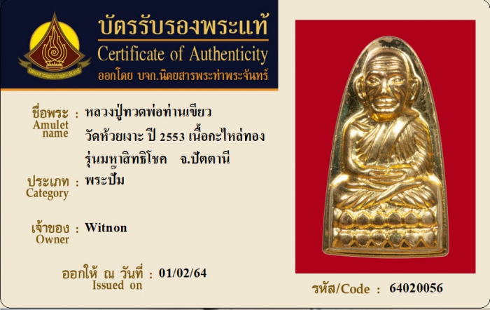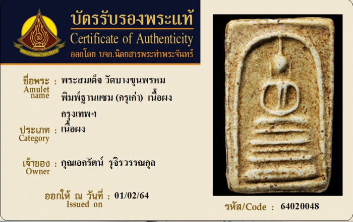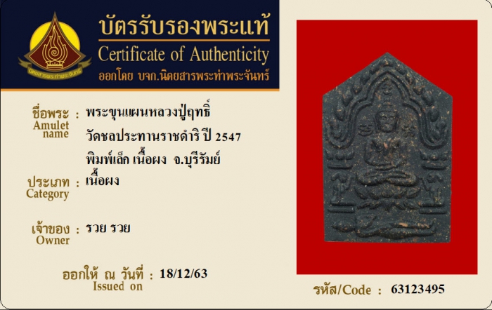 ค้นหาใบการันตีพระแท้