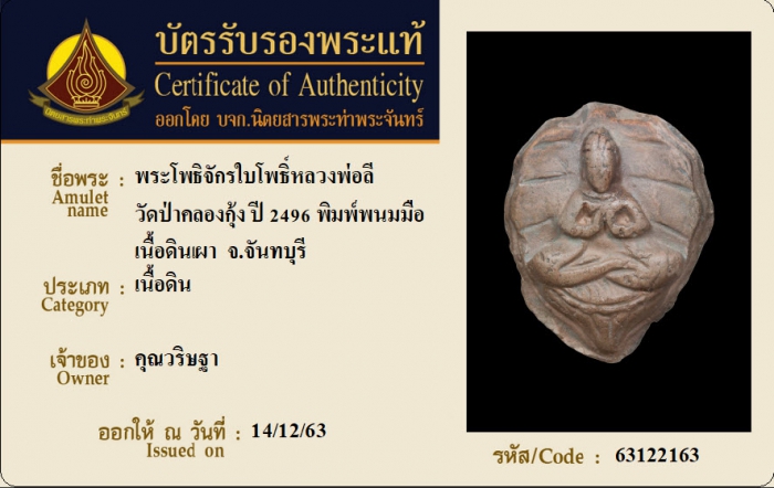 ค้นหาใบการันตีพระแท้