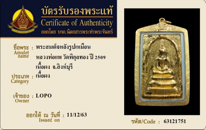 ค้นหาใบการันตีพระแท้