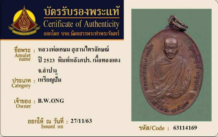 ค้นหาใบการันตีพระแท้