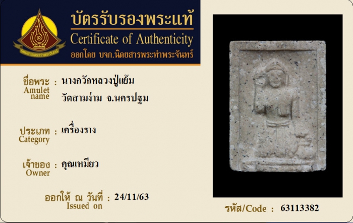 ค้นหาใบการันตีพระแท้
