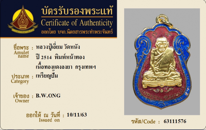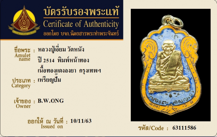 ค้นหาใบการันตีพระแท้