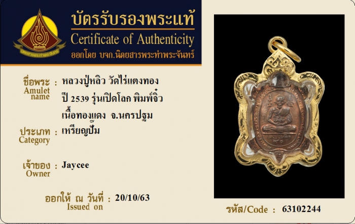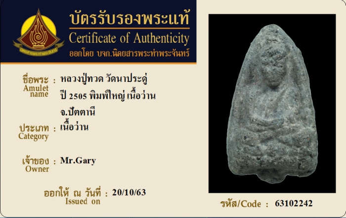 ค้นหาใบการันตีพระแท้