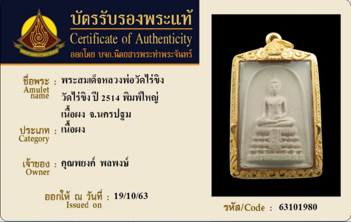 ค้นหาใบการันตีพระแท้