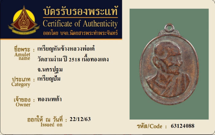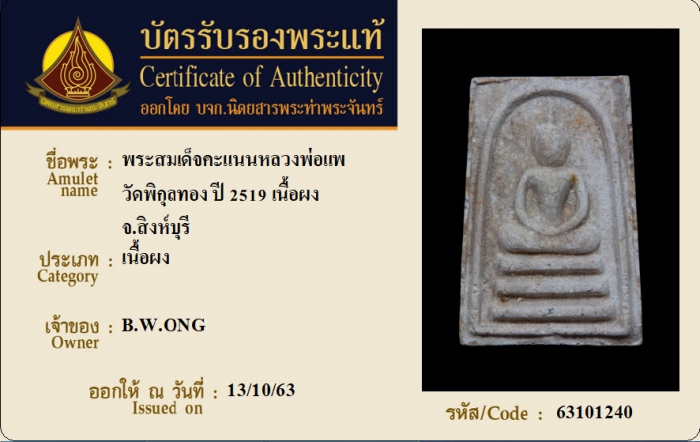 ค้นหาใบการันตีพระแท้