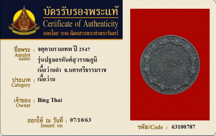 ค้นหาใบการันตีพระแท้
