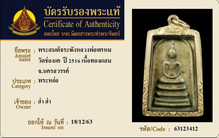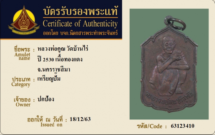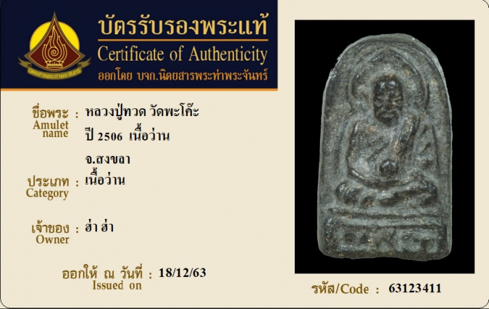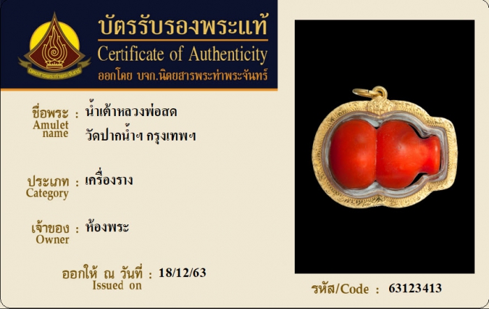 ค้นหาใบการันตีพระแท้