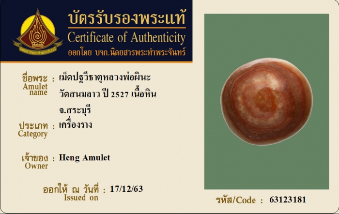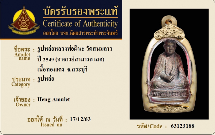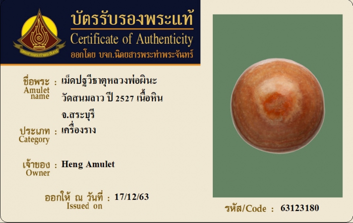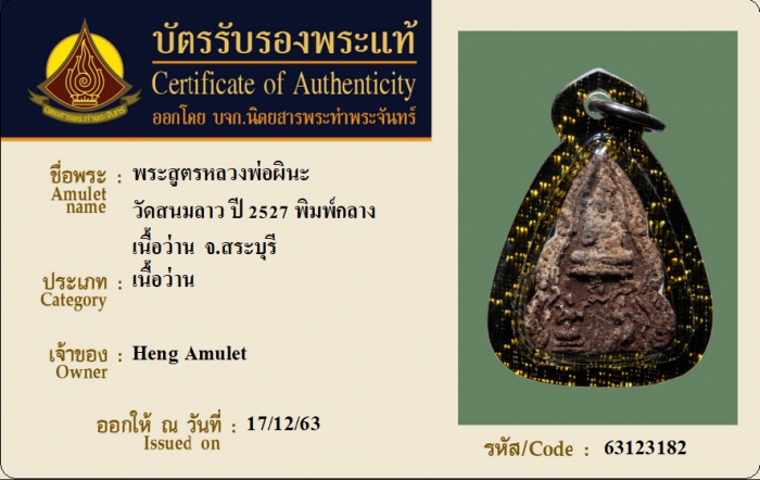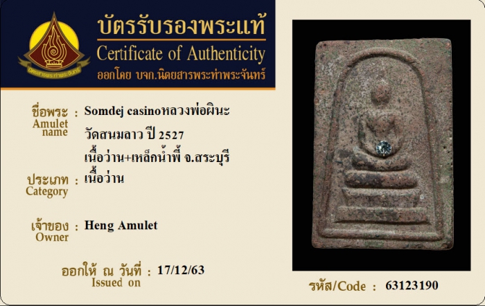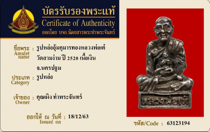 ค้นหาใบการันตีพระแท้
