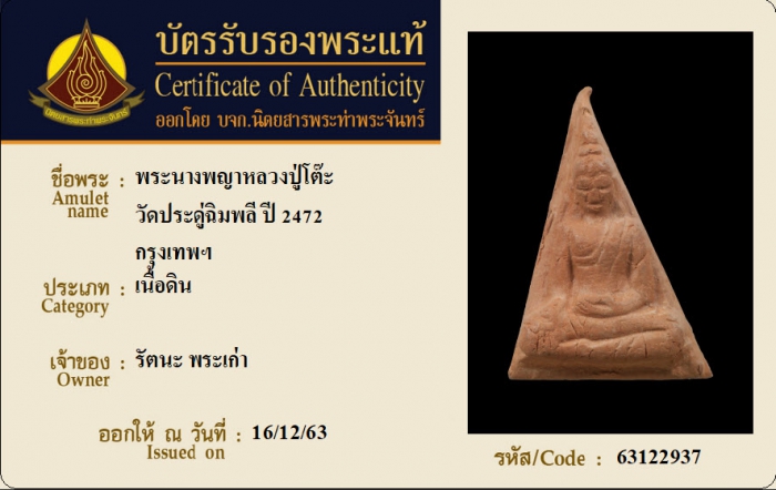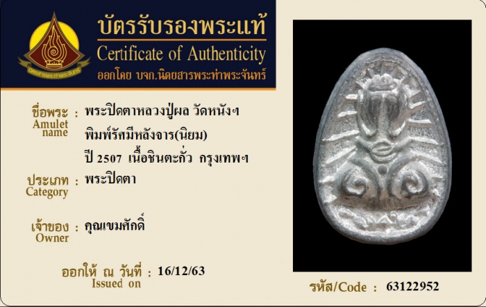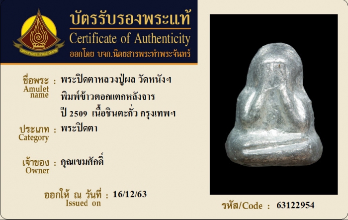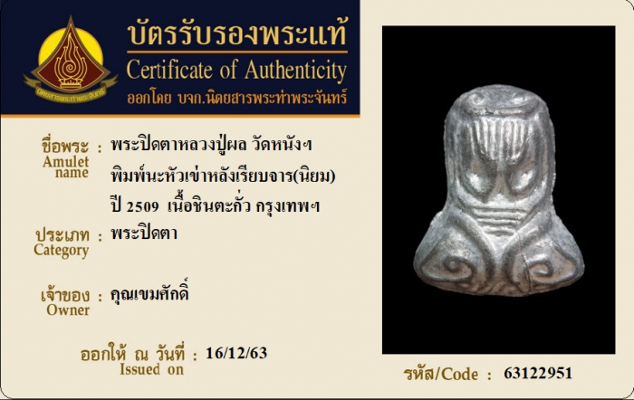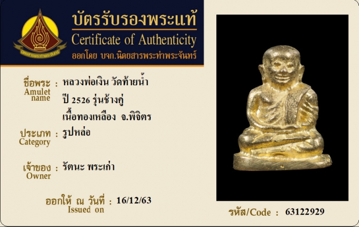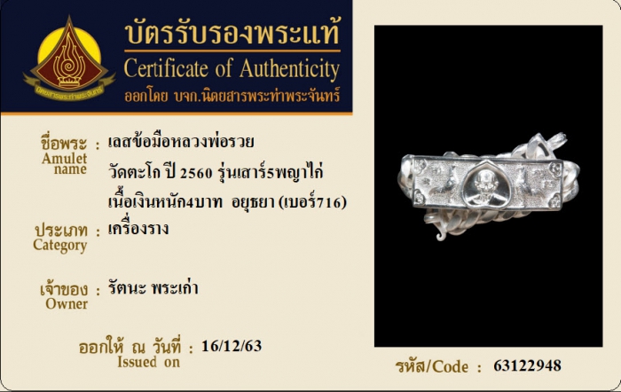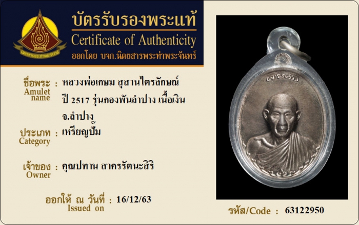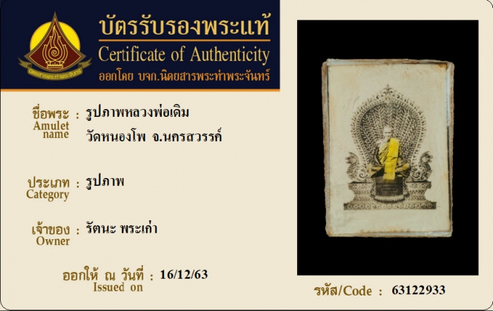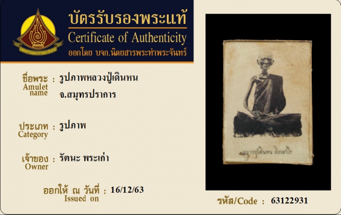 ค้นหาใบการันตีพระแท้