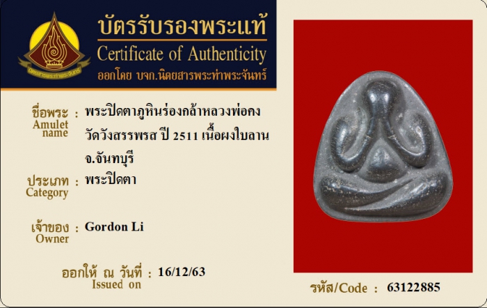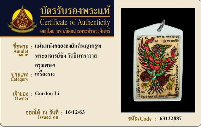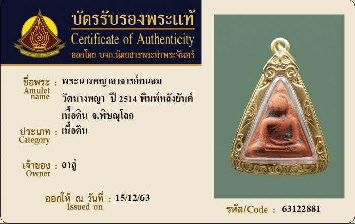 ค้นหาใบการันตีพระแท้