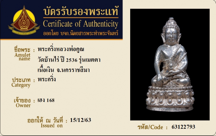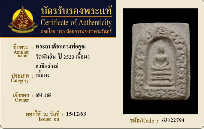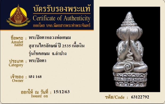 ค้นหาใบการันตีพระแท้