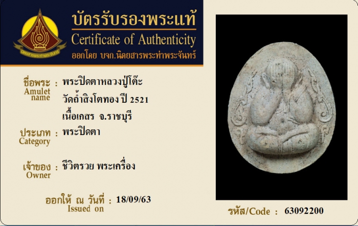 ค้นหาใบการันตีพระแท้