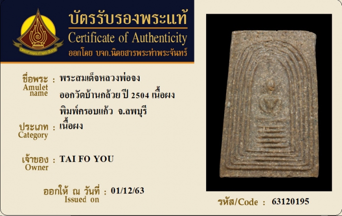 ค้นหาใบการันตีพระแท้
