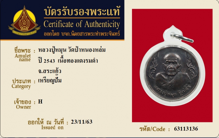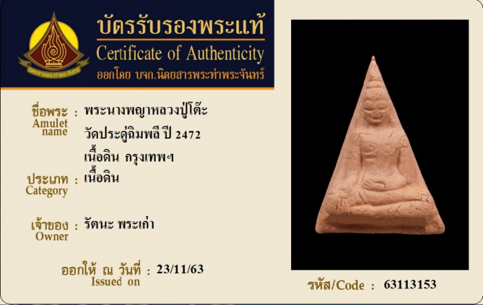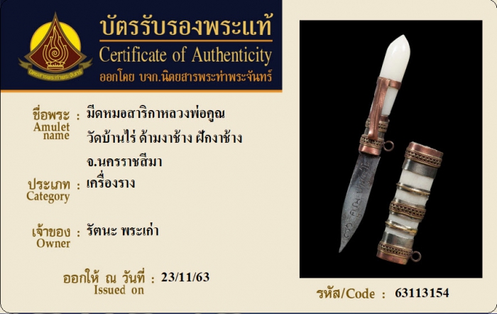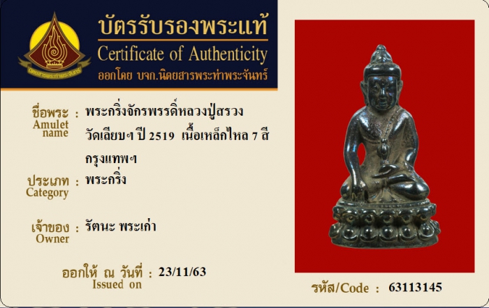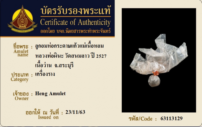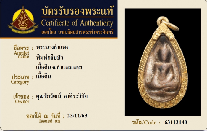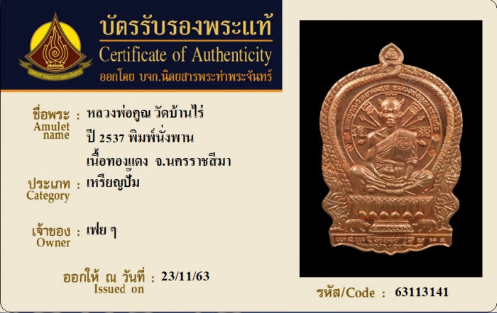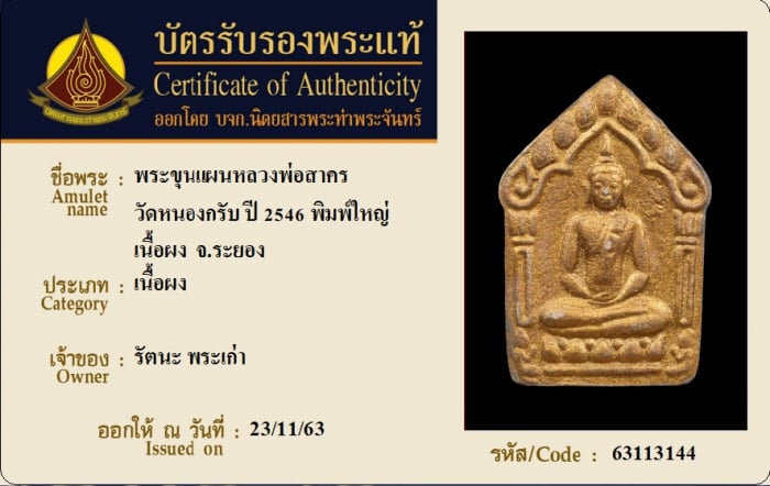 ค้นหาใบการันตีพระแท้