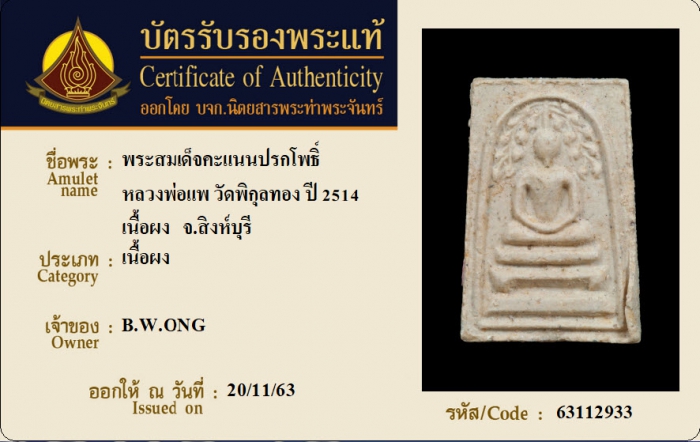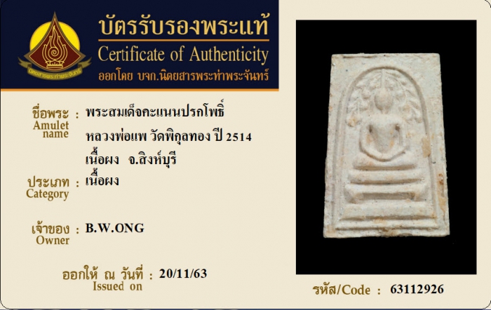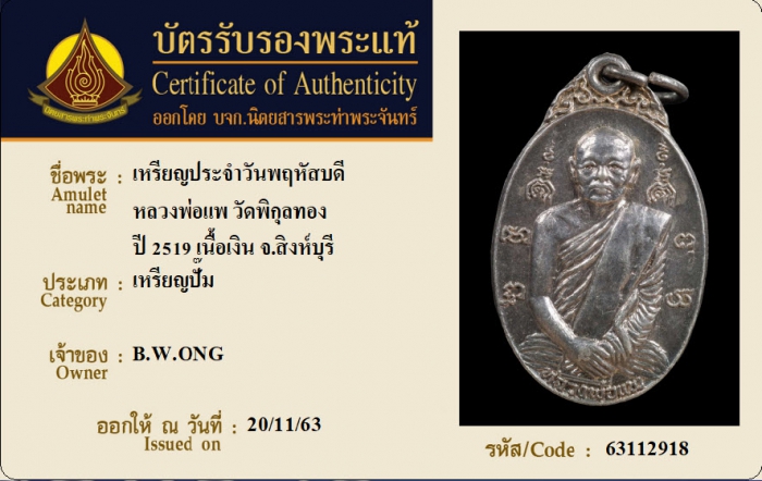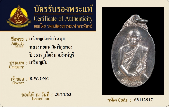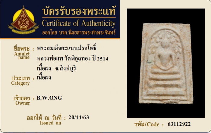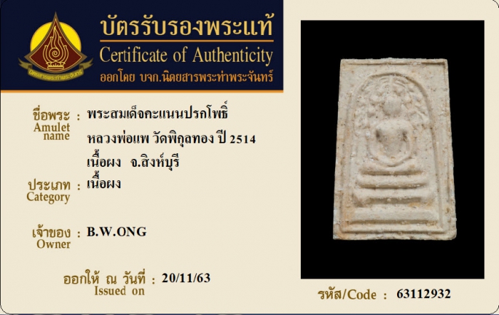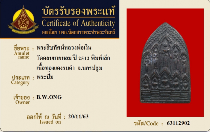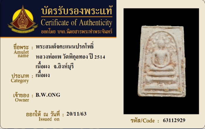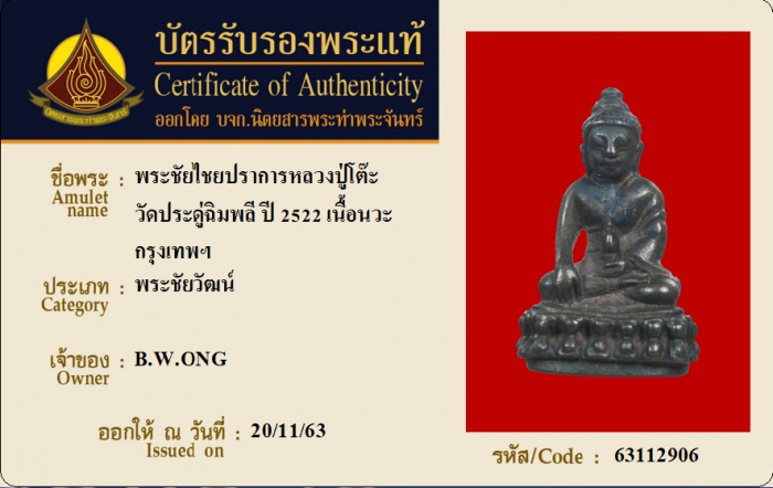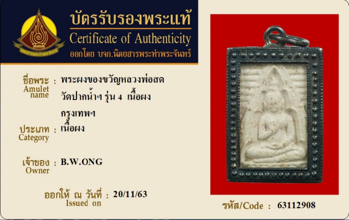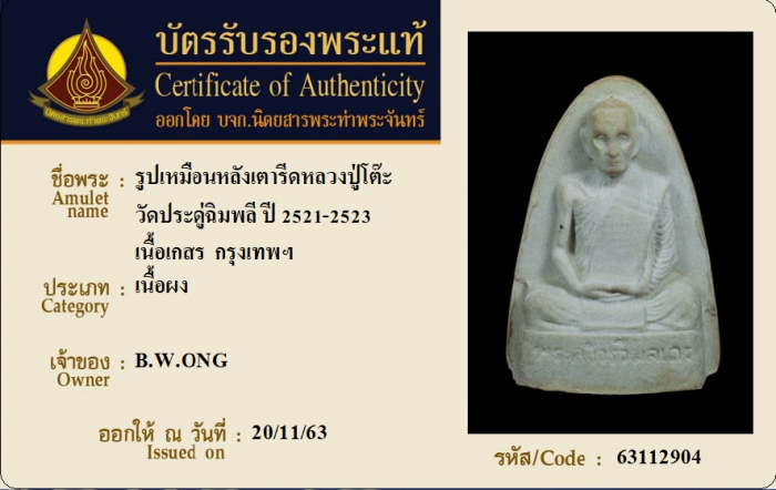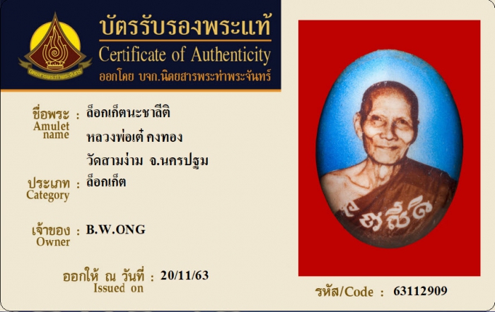 ค้นหาใบการันตีพระแท้