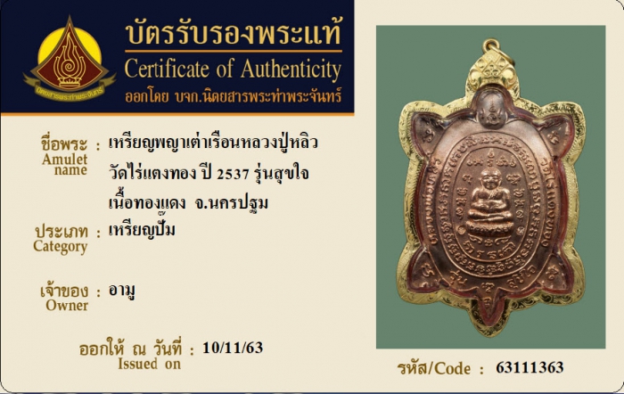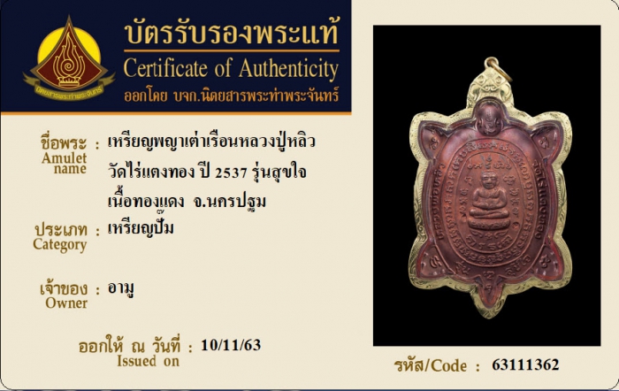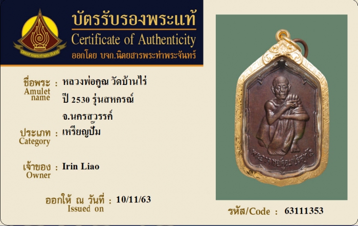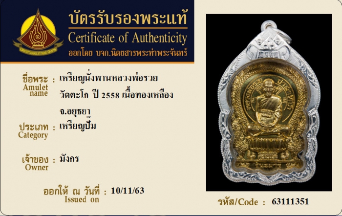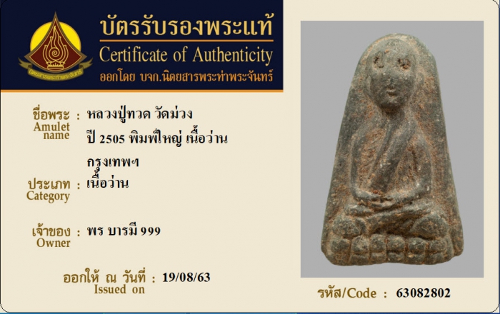 ค้นหาใบการันตีพระแท้