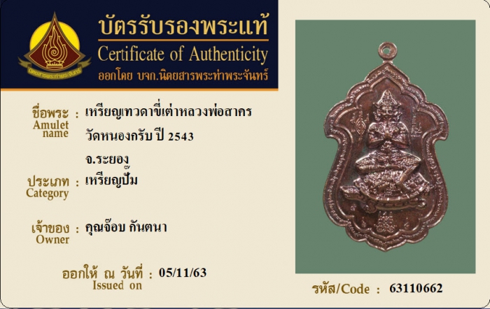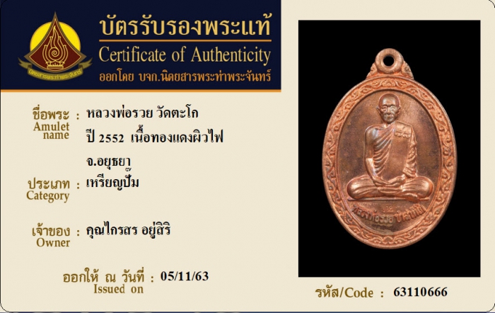 ค้นหาใบการันตีพระแท้