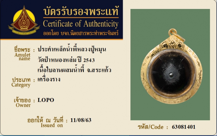 ค้นหาใบการันตีพระแท้