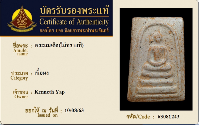 ค้นหาใบการันตีพระแท้